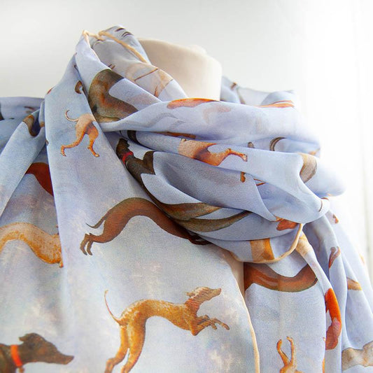 Silk Chiffon Hunt in the Forest Scarf featuring Running Hounds