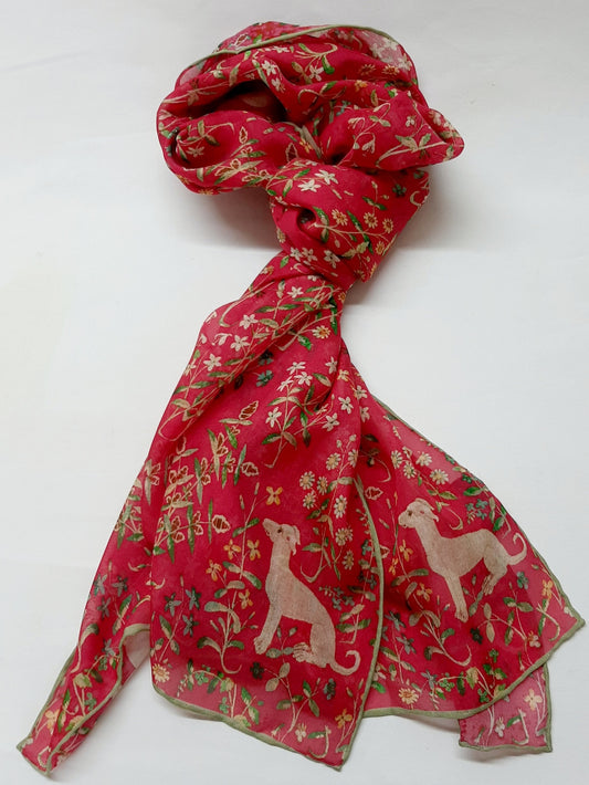 Pure Silk Cluny Tapestry Scarf featuring hounds